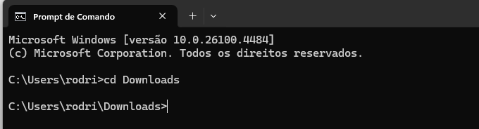 Abra um Prompt de Comando e vá até a pasta que o arquivo foi baixado: