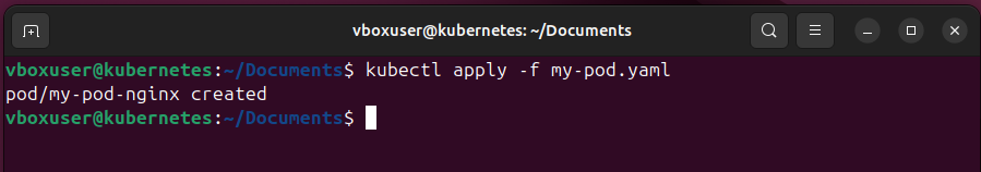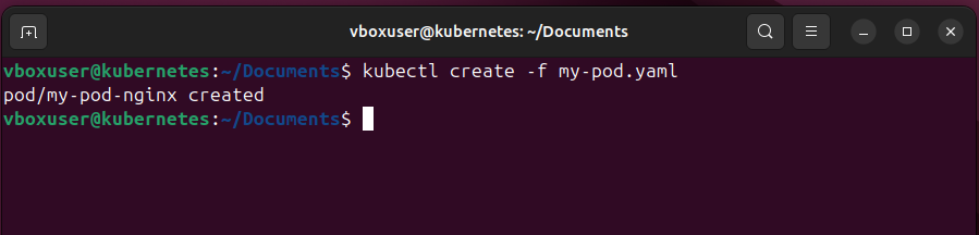 Salve o arquivo em Documents, com o nome de my-pod.yaml
