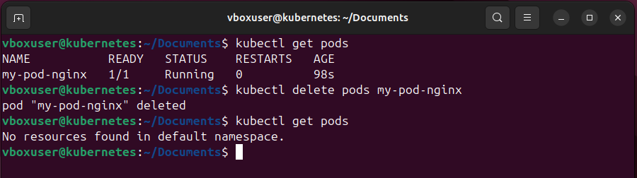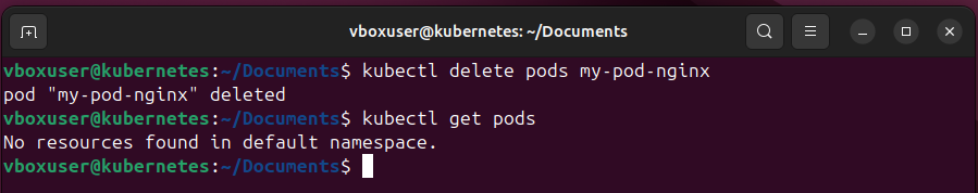 Depois podemos apagar novamente a pod criada, verificando se realmente não existe mais nada: