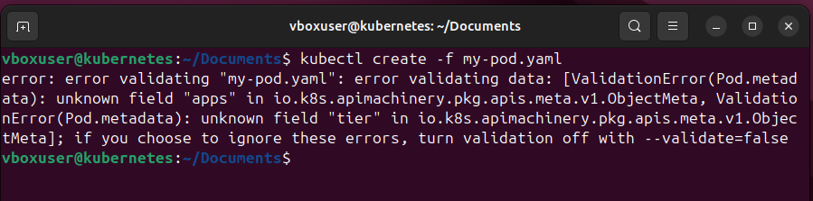 kubectl create -f my-pod.yamlPodemos ver que as mensagens de erro não são exatamente as mesmas: